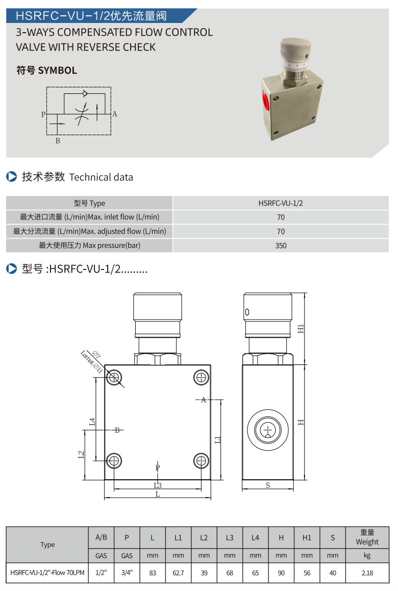 HSVRFC3 SERIES FLOW CONTROL VALVE THREE-WAY