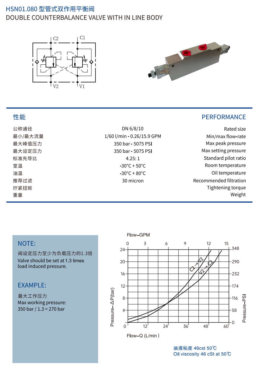 DOUBLE COUNTERBALANCE VALVE WITH IN LINE BODY
