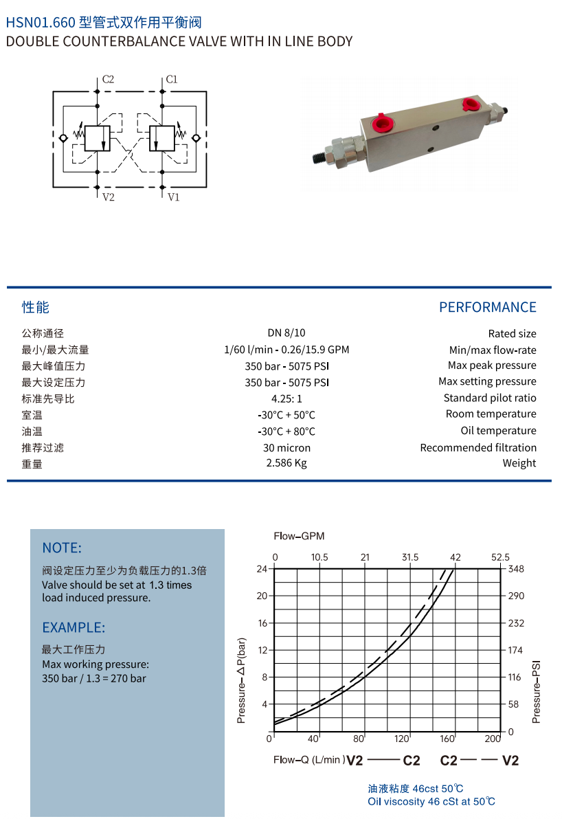 DOUBLE COUNTERBALANCE VALVE WITH IN LINE BODY