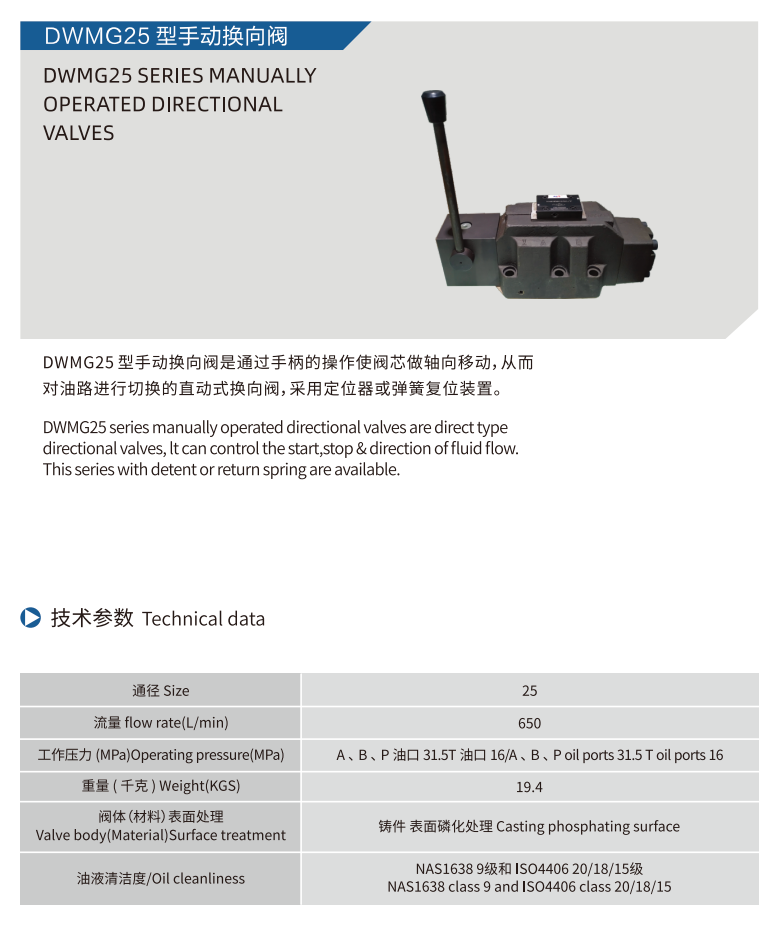 DWMG25 SERIES MANUALLY OPERATED DIRECTIONAL VALVES