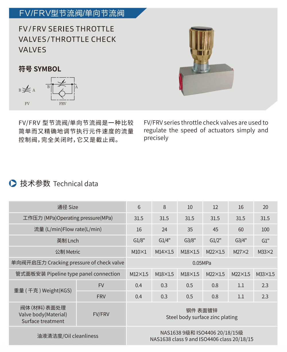 FV/FRV SERIES THROTTLE VALVES/THROTTLE CHECK VALVES