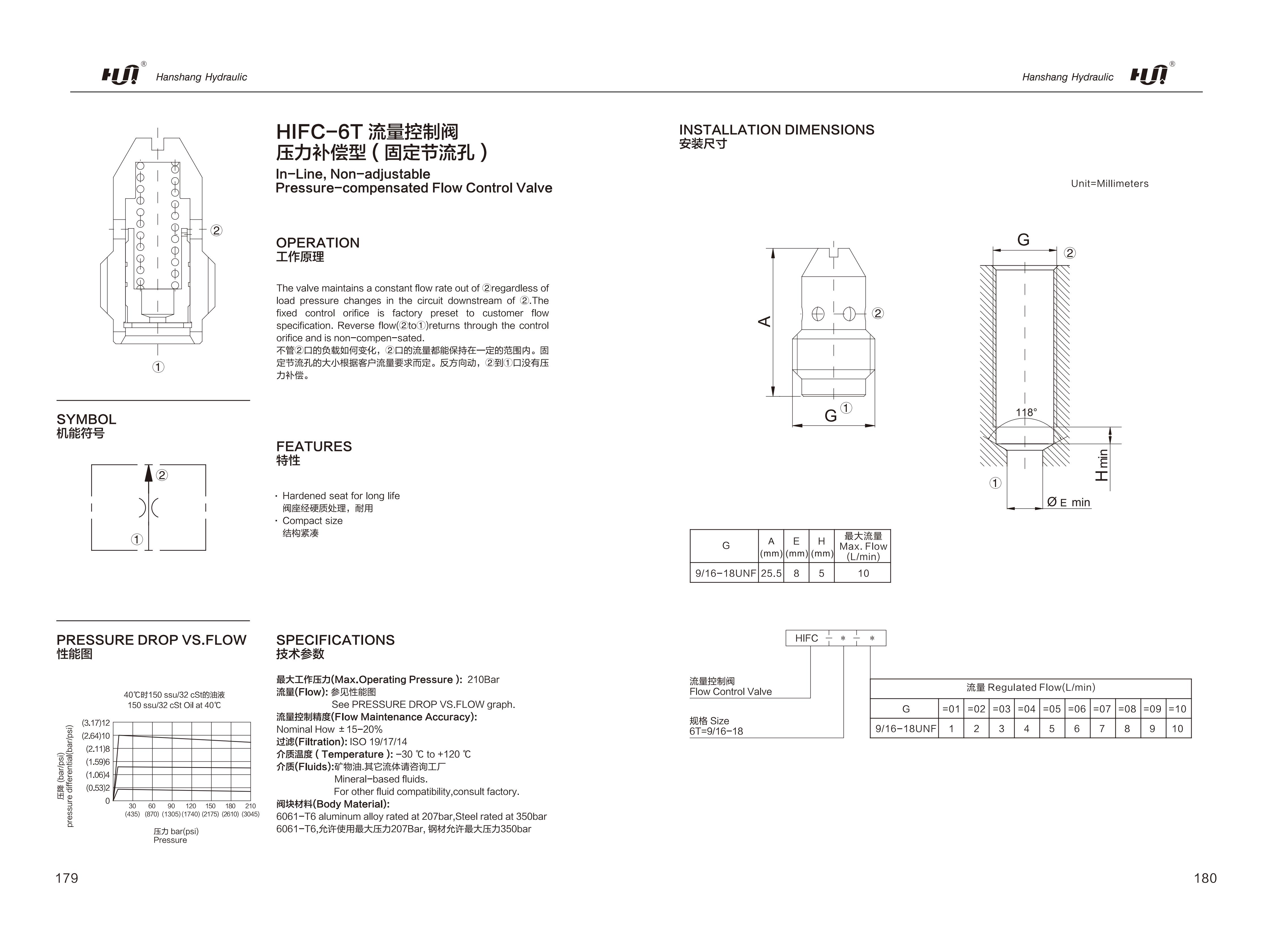 HIFC-6T In-Line, Non-adjustable Pressure-compensated Flow Control Valve