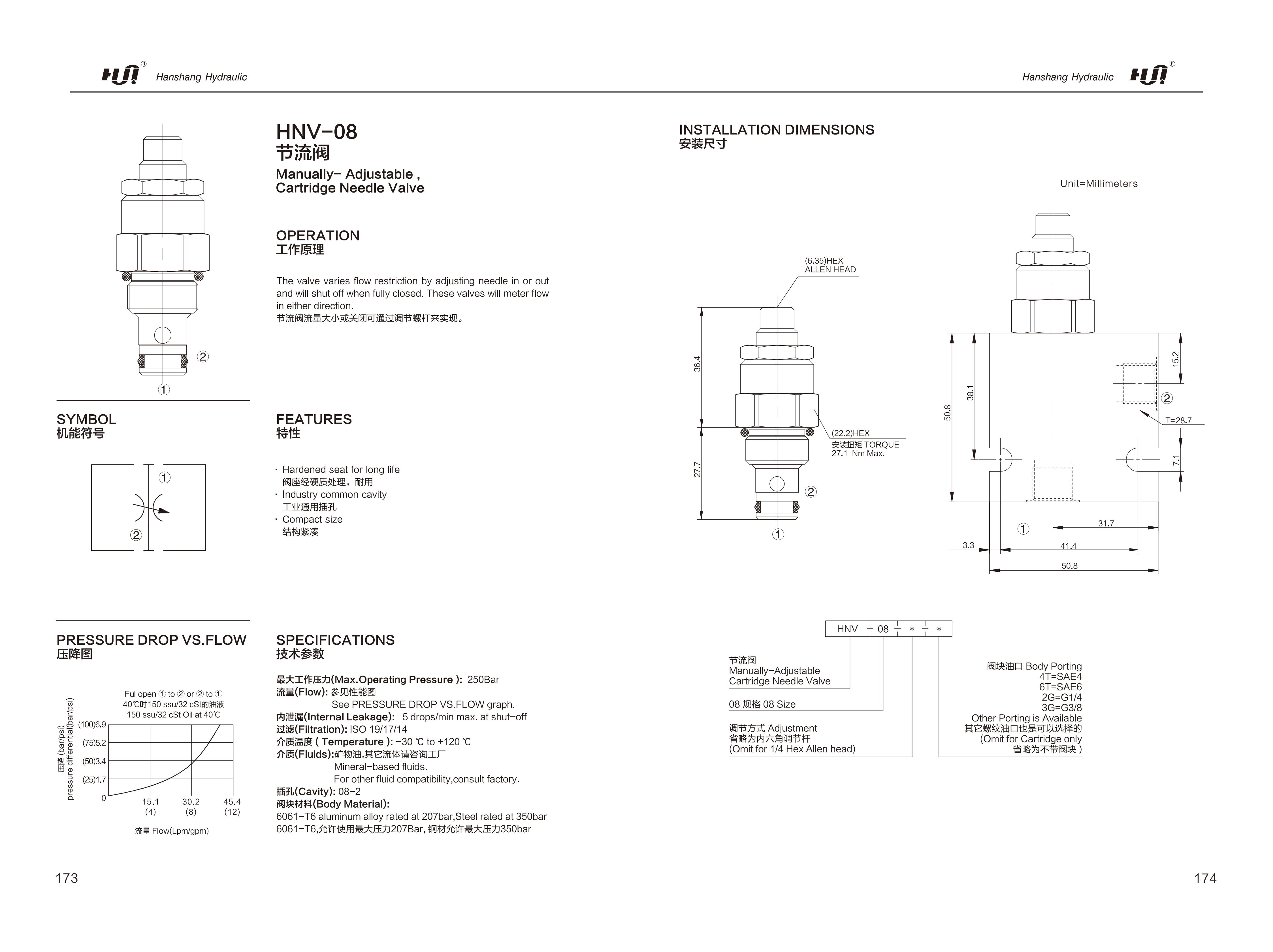 HNV-08 Manually-Adjustable, Cartridge Needle Valve