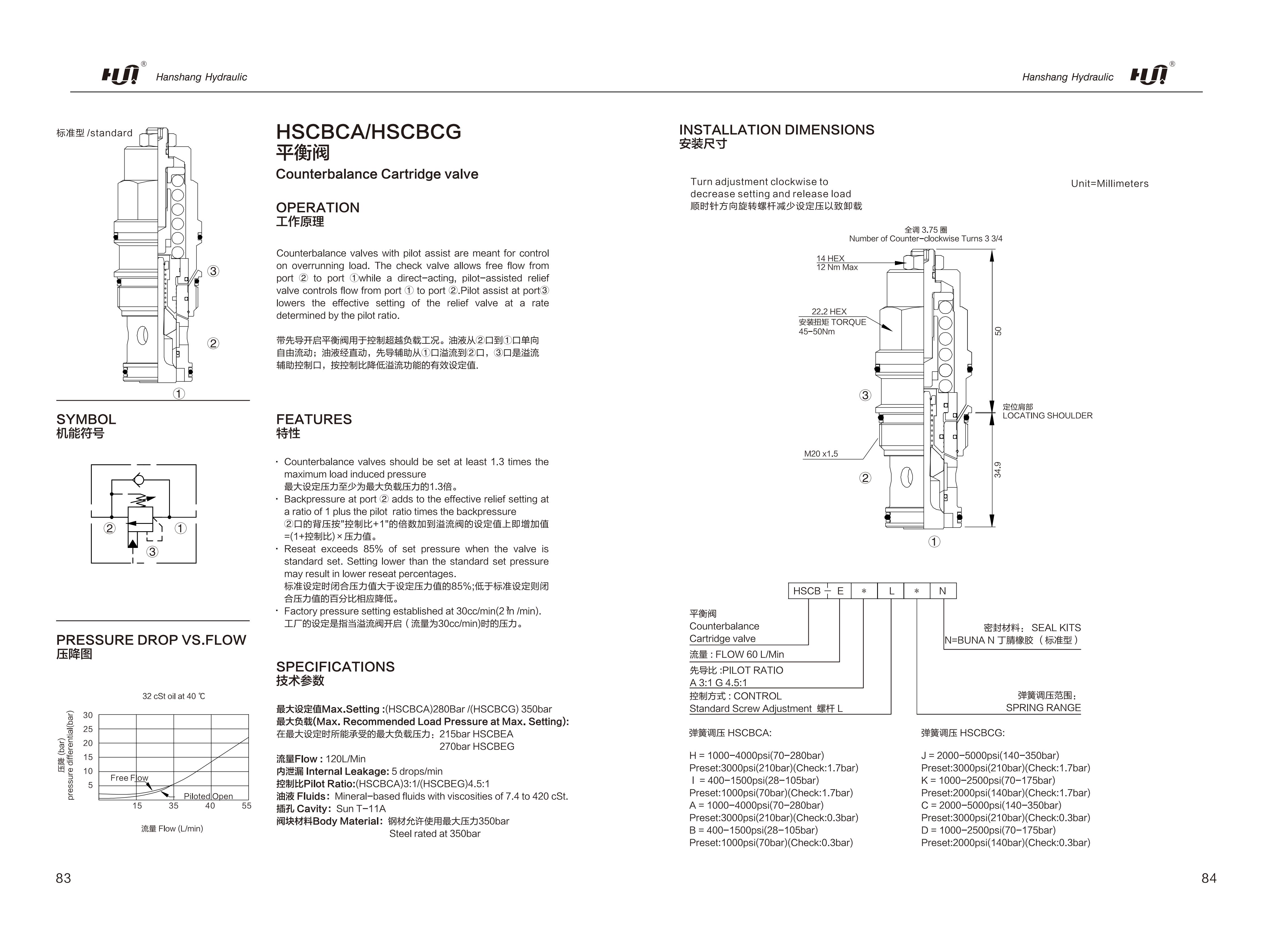 HSCBCA/HSCBCG Counterbalance Cartridge valve