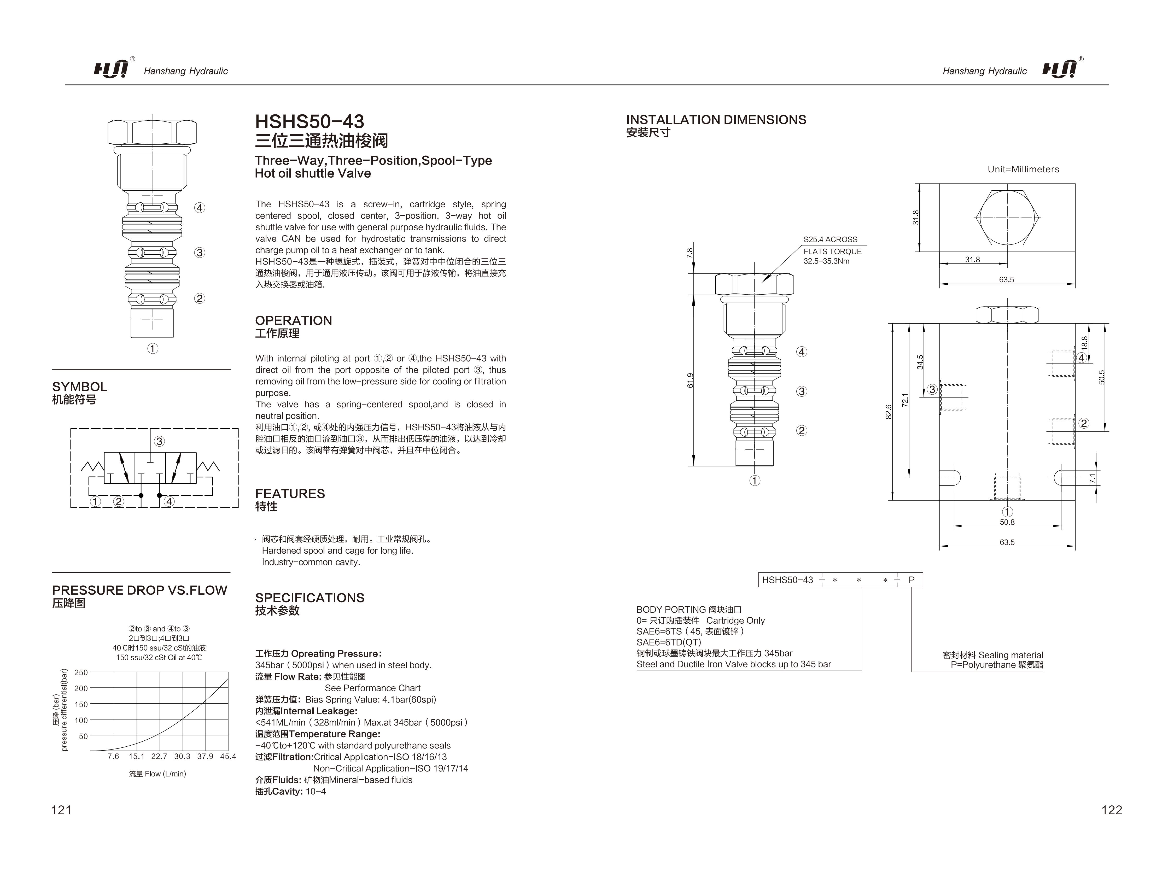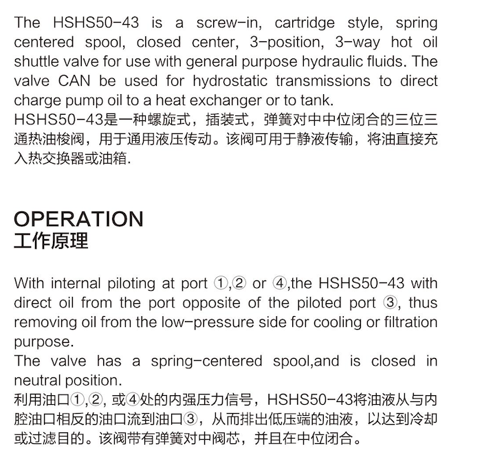 HSHS50-43 Three-Way, Three-Position, Spool-Type Hot oil shuttle Valve