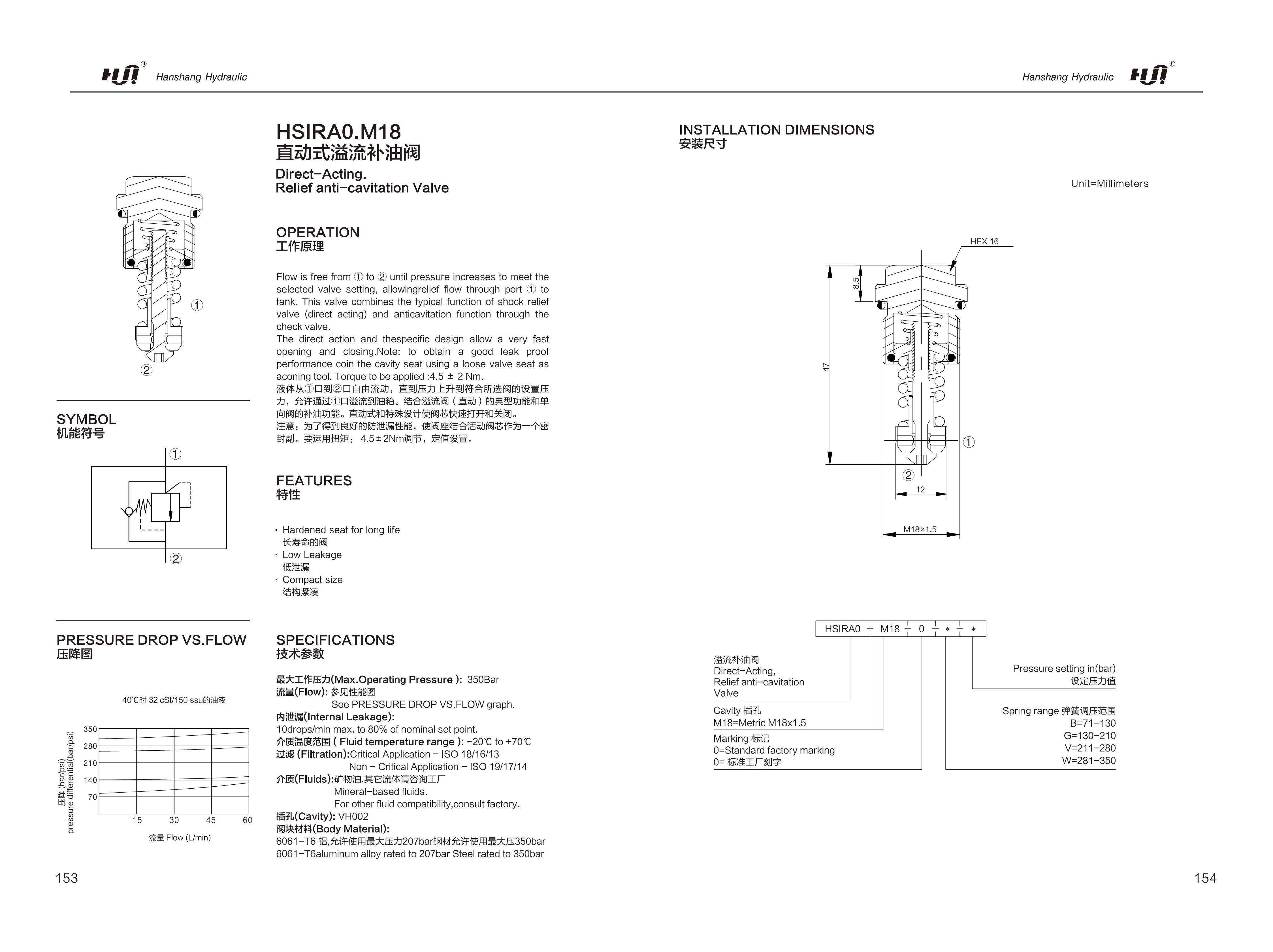 HSRVY0.M18 VALVE SERIES METRIC Cartridge-350 ba...