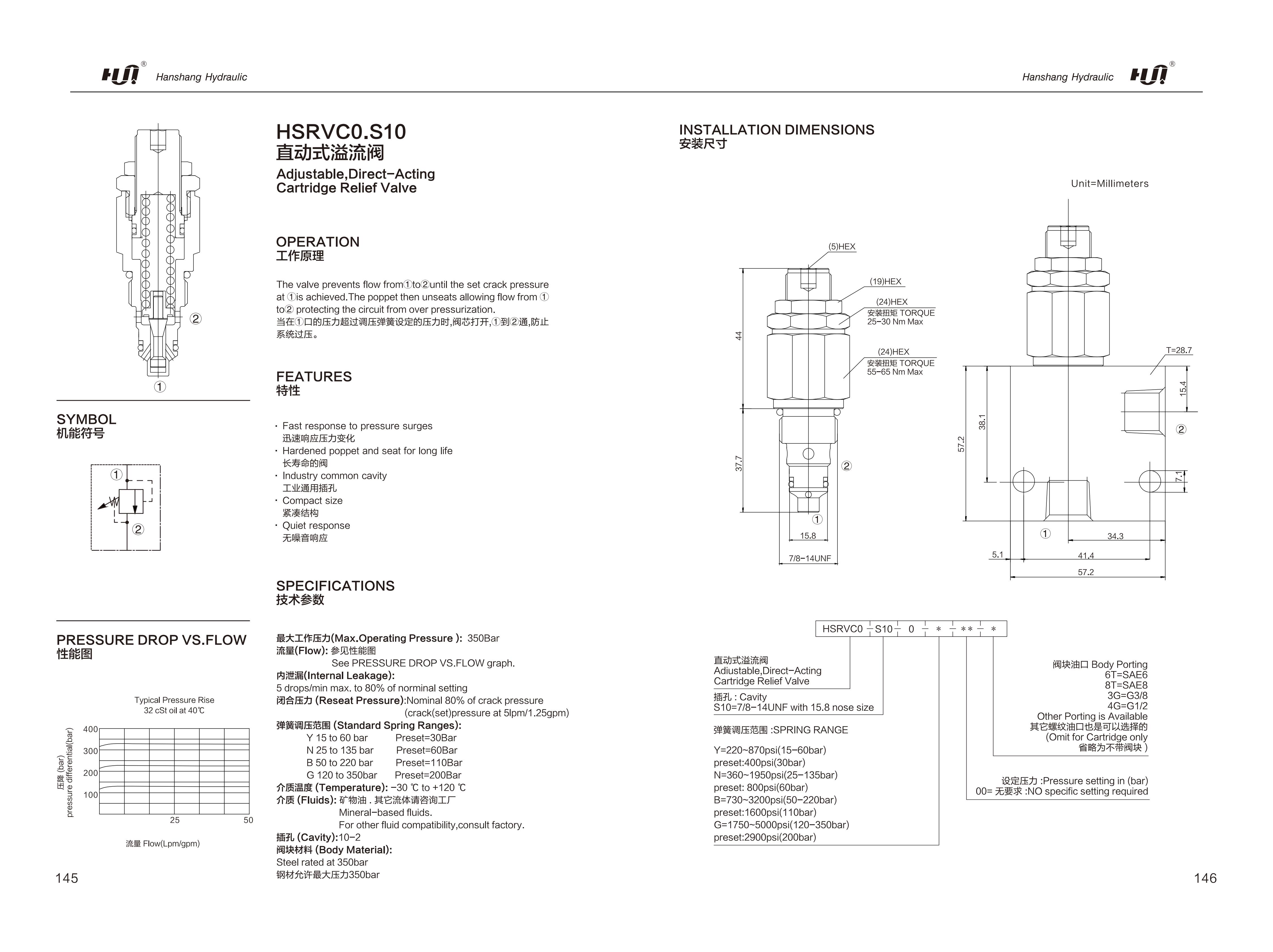 HSRVY0.M18 VALVE SERIES METRIC Cartridge-350 ba...