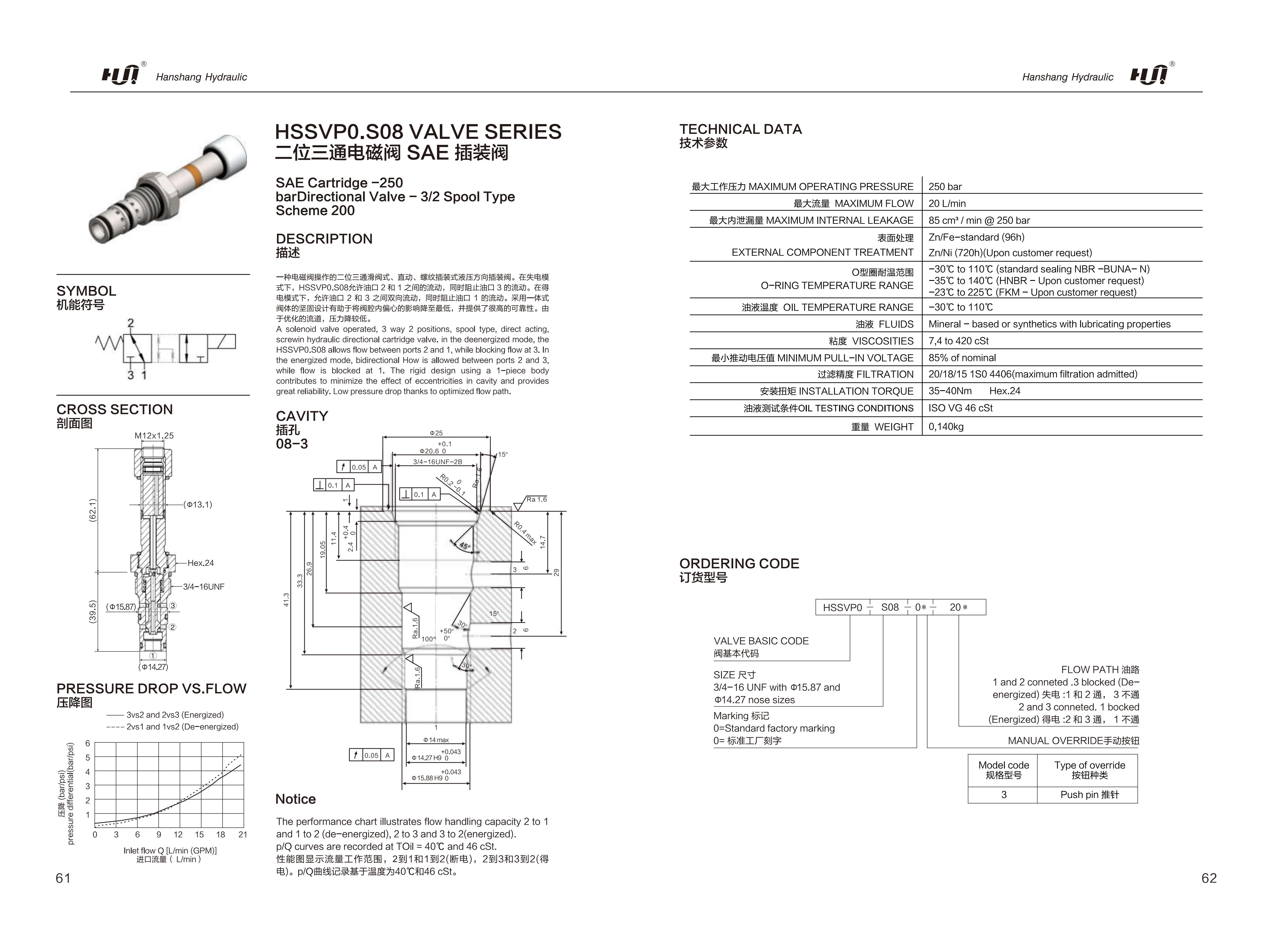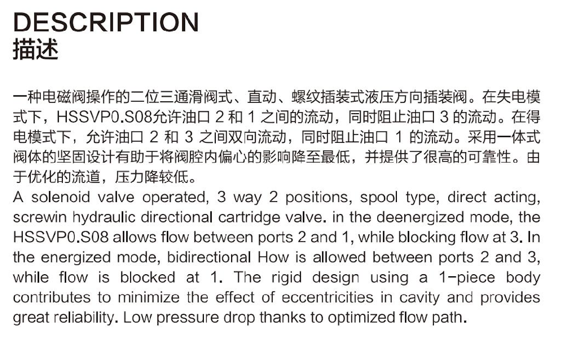 HSSVP0.S08 VALVE SERIES SAE Cartridge -250 barDirectional Valve – 3/2 Spool Type Scheme 200
