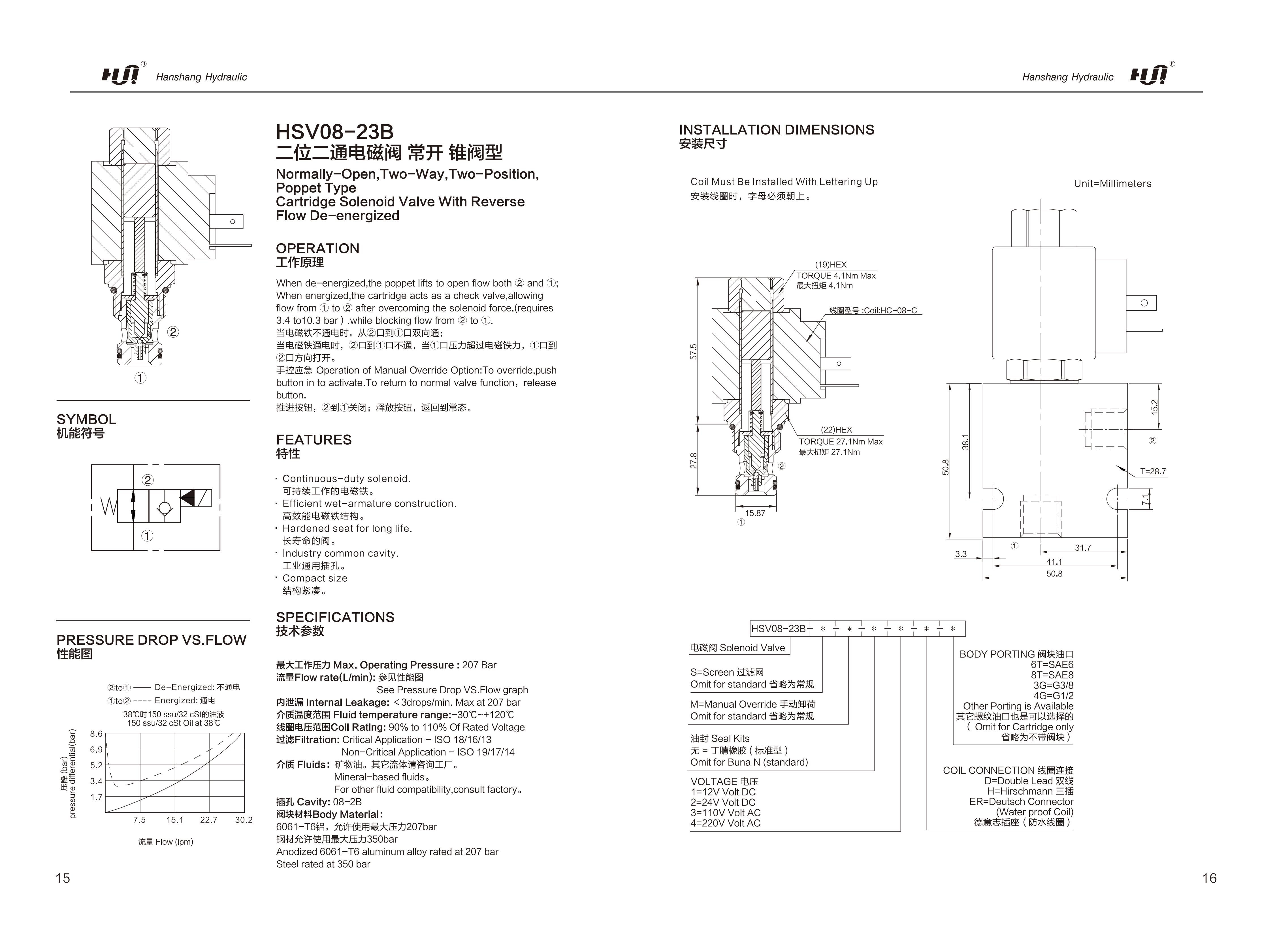 HSV08-25 Two-Way, Two-Position, Spool-Type Cart...