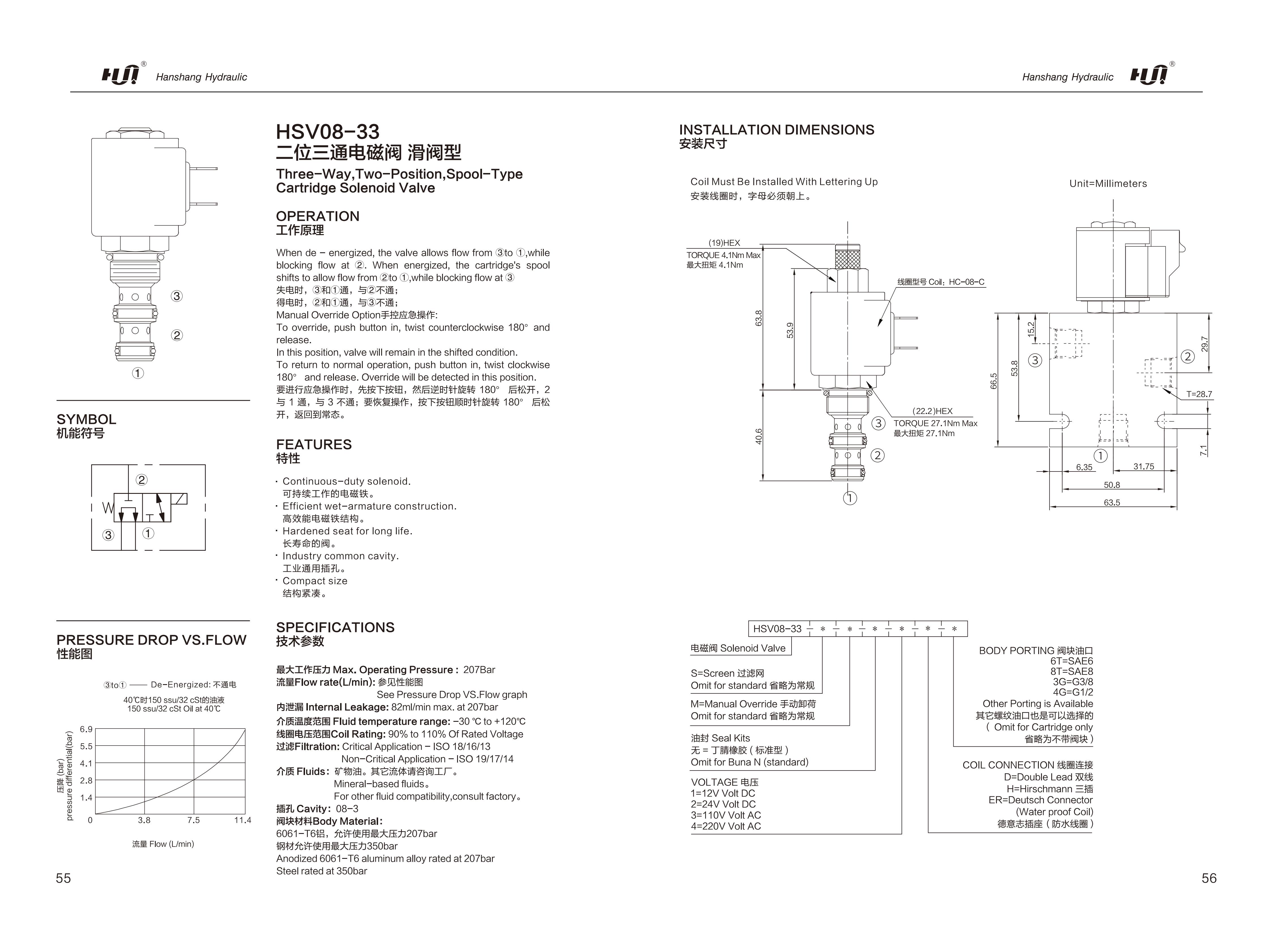HSV08-33 Three-Way, Two-Position, Spool-Type Cartridge Solenoid Valve
