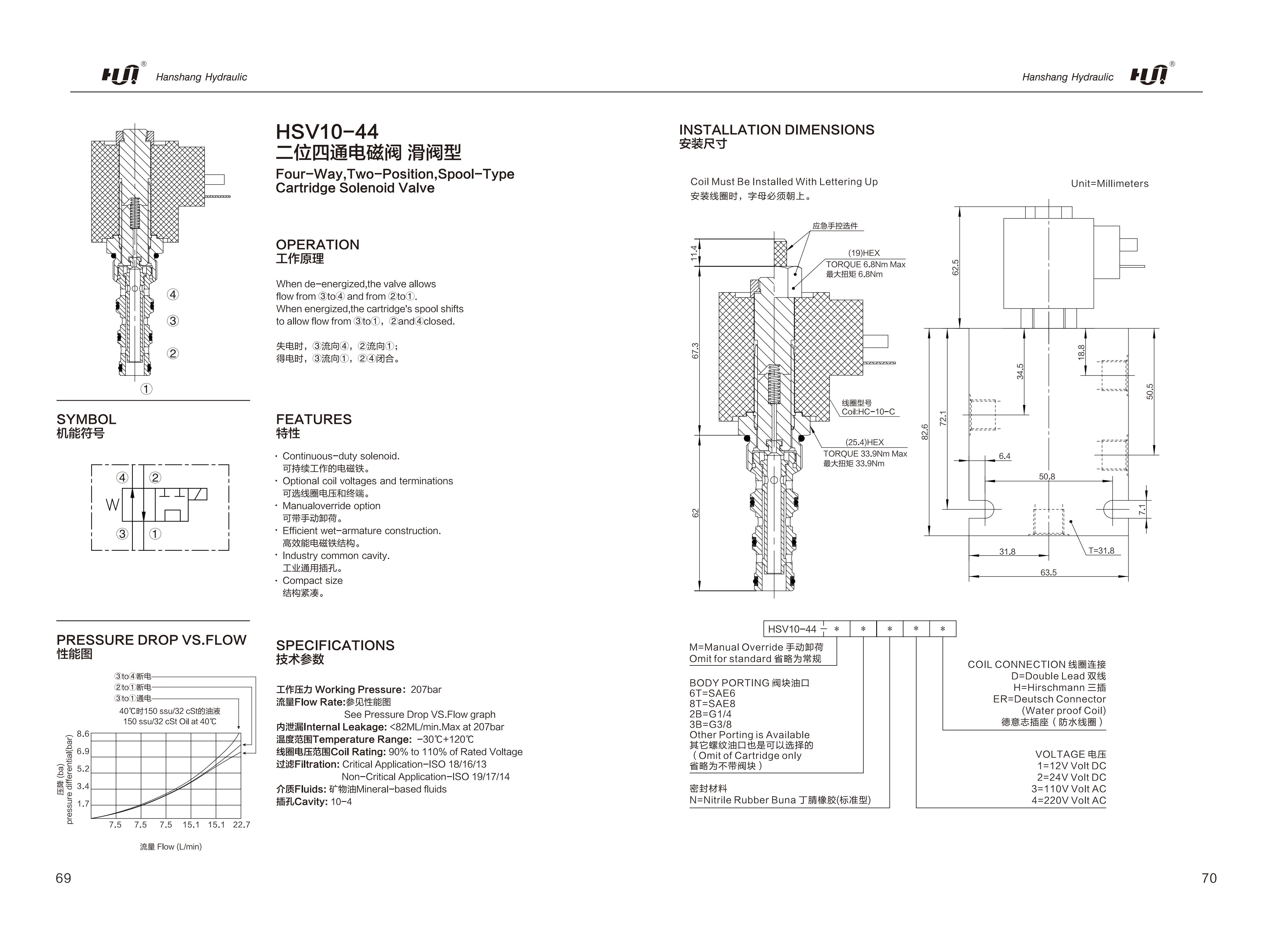 HSV10-44 Four-Way, Two-Position, Spool-Type Cartridge Solenoid Valve