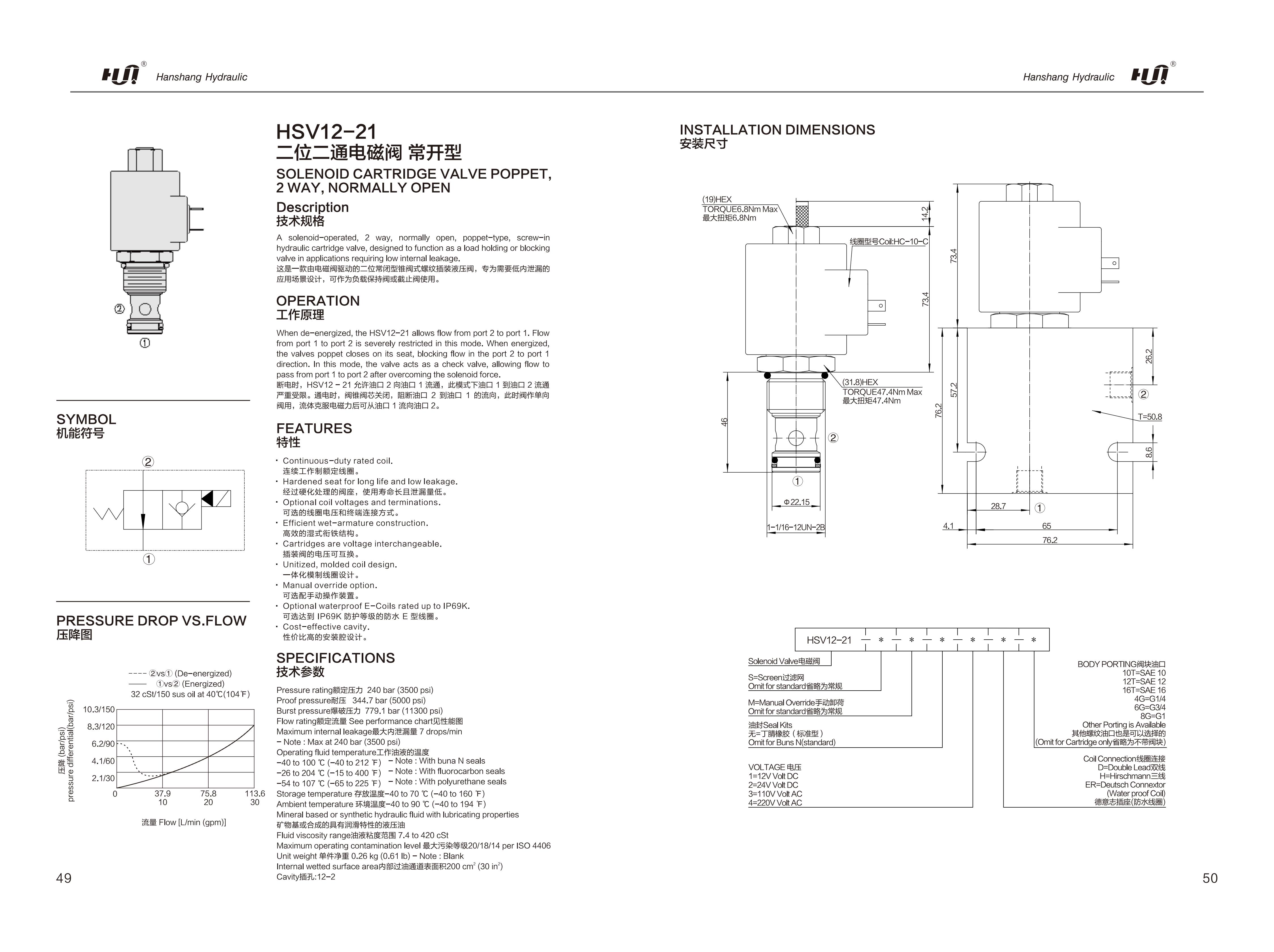 HSV12-20 SOLENOID CARTRIDGE VALVE POPPET, 2 WAY...