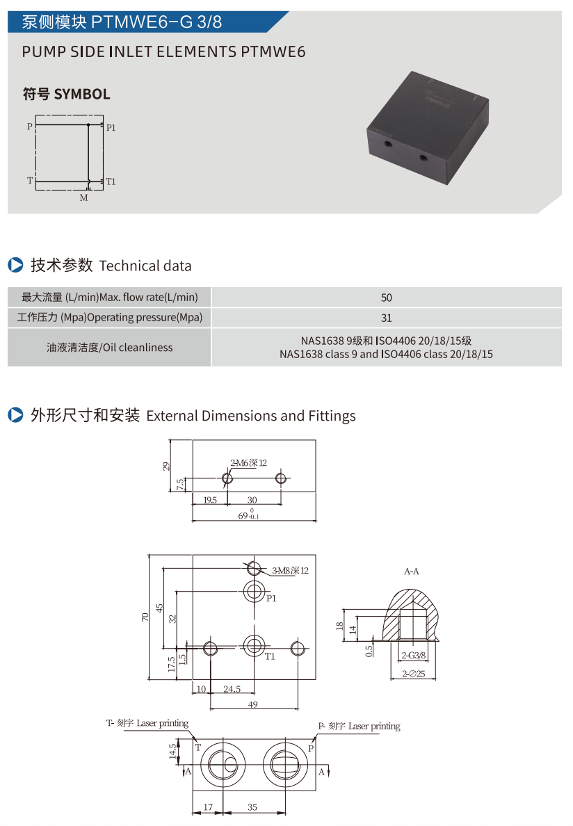 PUMP SIDE INLET ELEMENTS WITH PRIMARY PRESSURE RELIEF VALVE PSRMWE6