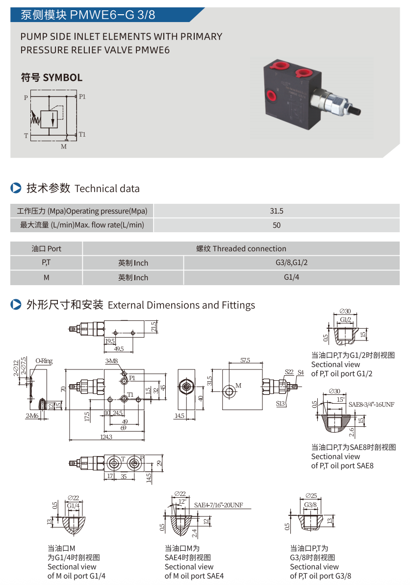 PUMP SIDE INLET ELEMENTS WITH PRIMARY PRESSURE RELIEF VALVE PMWE6