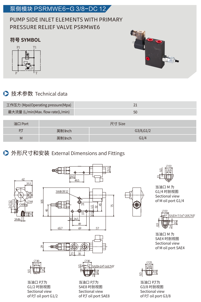 PUMP SIDE INLET ELEMENTS WITH PRIMARY PRESSURE RELIEF VALVE PSRMWE6