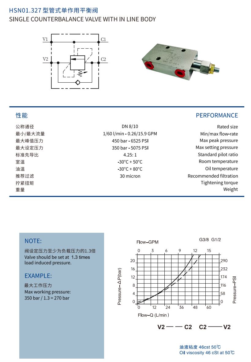 SINGLE COUNTERBALANCE VALVE WITH IN LINE BODY
